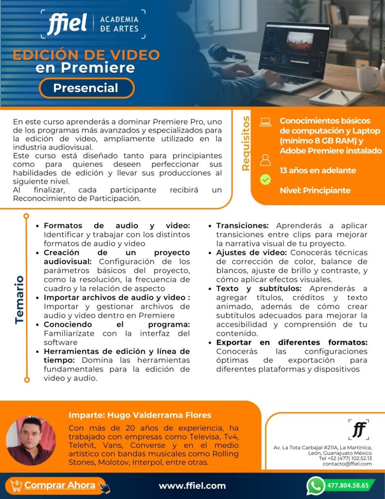 🎬 ¡Aprende a contar historias con movimiento! Este curso te llevará desde la organización de clips hasta la exportación profesional, dominando cortes, transiciones, audio y color