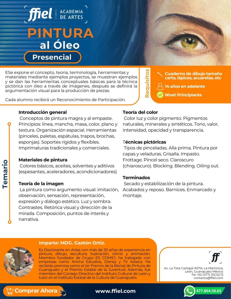 🎨 ¡Descubre la técnica clásica de los grandes maestros! Aprende a mezclar colores, crear texturas y dominar el volumen para dar vida a tus lienzos con la riqueza y brillo únicos del óleo.